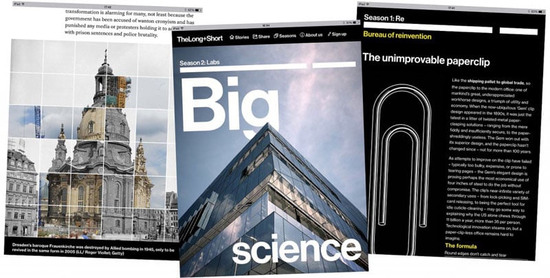 Nesta made the decision to publish in seasons, as the team had anticipated that the quarterly model needed adapting for mobile devices. Each season is released over a few weeks, with the publishing of features and shorter pieces carefully timed to give a real feel for the theme. This brings about a new series of challenges such as the most effective order to release articles and how to keep reader interest, which The Long + Short has met very well.